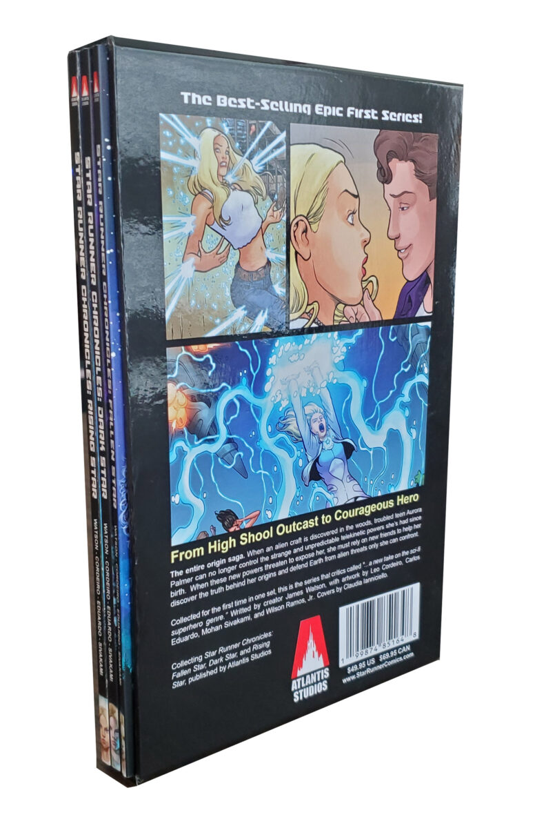 Collecting Fallen Star, Dark Star, and Rising Star for the first time in one set, this is the series that critics called “…a new take on the sci-fi superhero genre.” Written by James Watson, with artwork by Leo Cordeiro, Carlos Eduardo, Mohan Sivakami and Wilson Ramos, Jr.. Covers by Claudia Ianniciello.