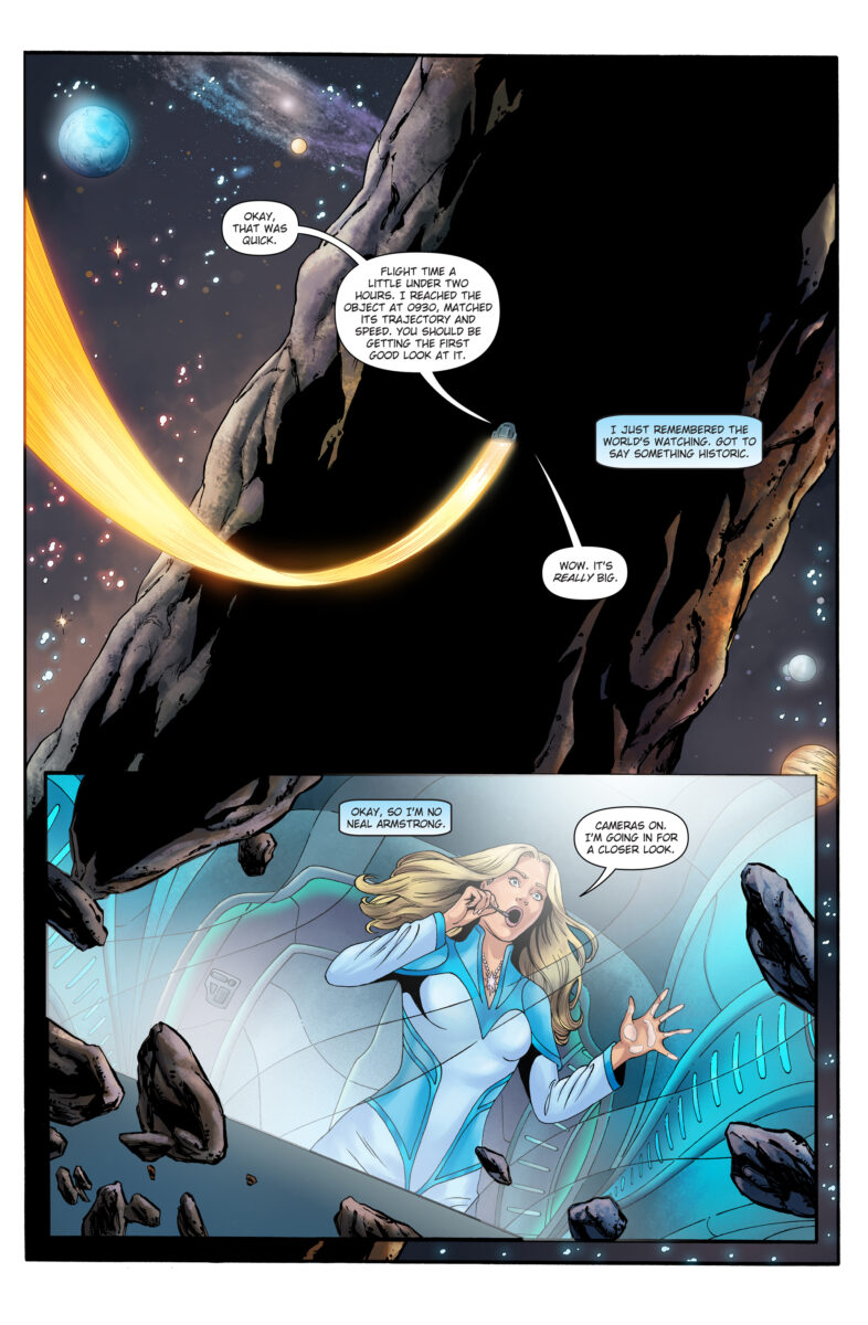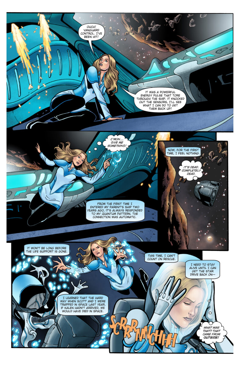 All-new four part series! Following the catastrophic events of Hidden Star, Aurora Palmer finds herself once again working for Vanguard. Having mastered her unique abilities of starship navigation, she uses her frequent missions to overcome the sadness of her break-up with Scott. Suddenly a new danger has appeared, and troubling visions of the future make Aurora fearful that both she and Scott – and all of Earth – could be destroyed!